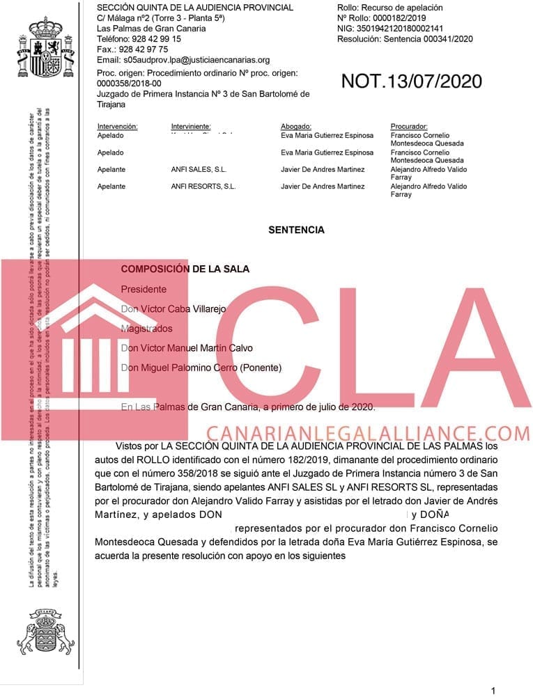 High Court No5 continues to dismiss the appeals launched buy Anfi and in doing so continue to support the rulings of the First Instance Courts.